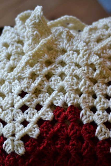 If you're a fellow crochet-er (?) and wanna know how I made it, you can check out this general series of videos on the grannie ripple afghan on Youtube. I followed her tutorials pretty closely except for the colors and size (mine is way smaller).